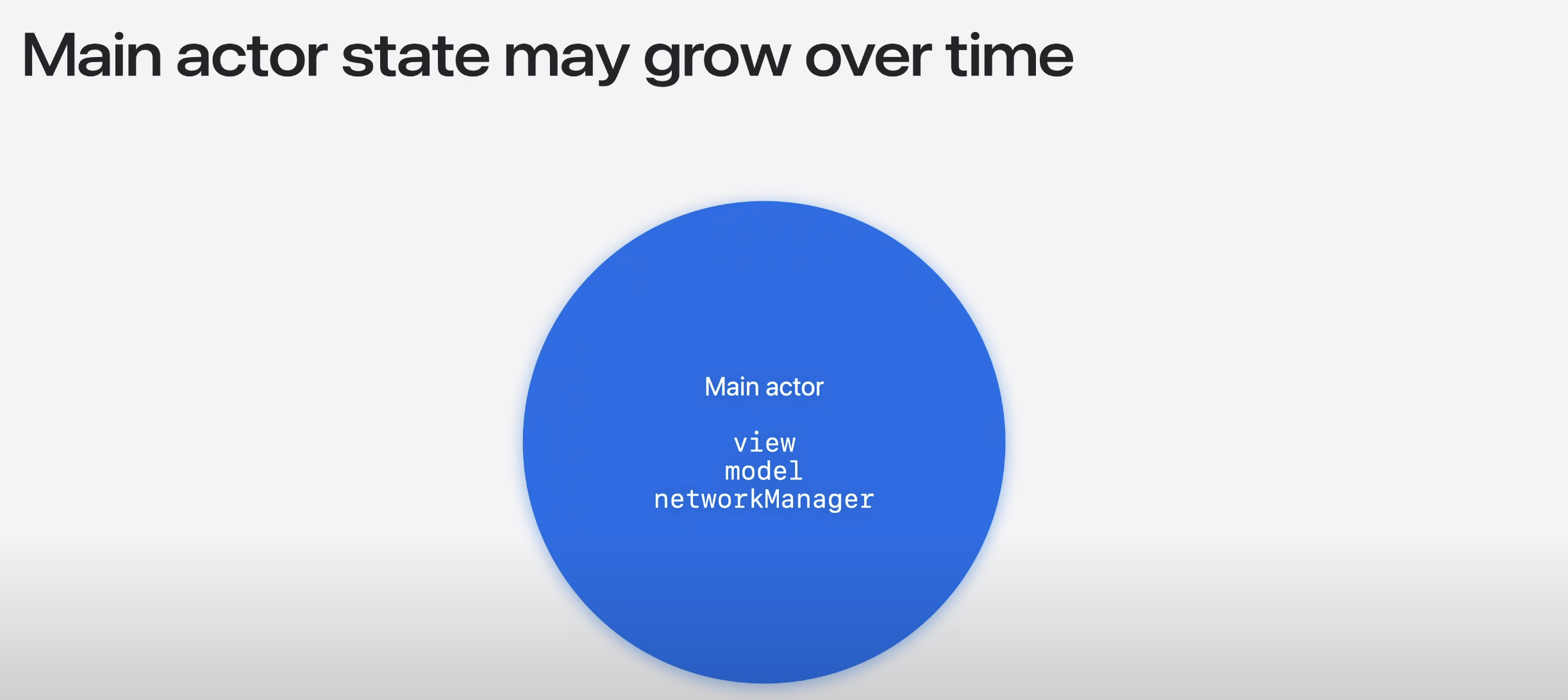 시간이 지남에 따라 앱이 커질수록 MainActor에서 수행되는 상태의 양도 커짐.