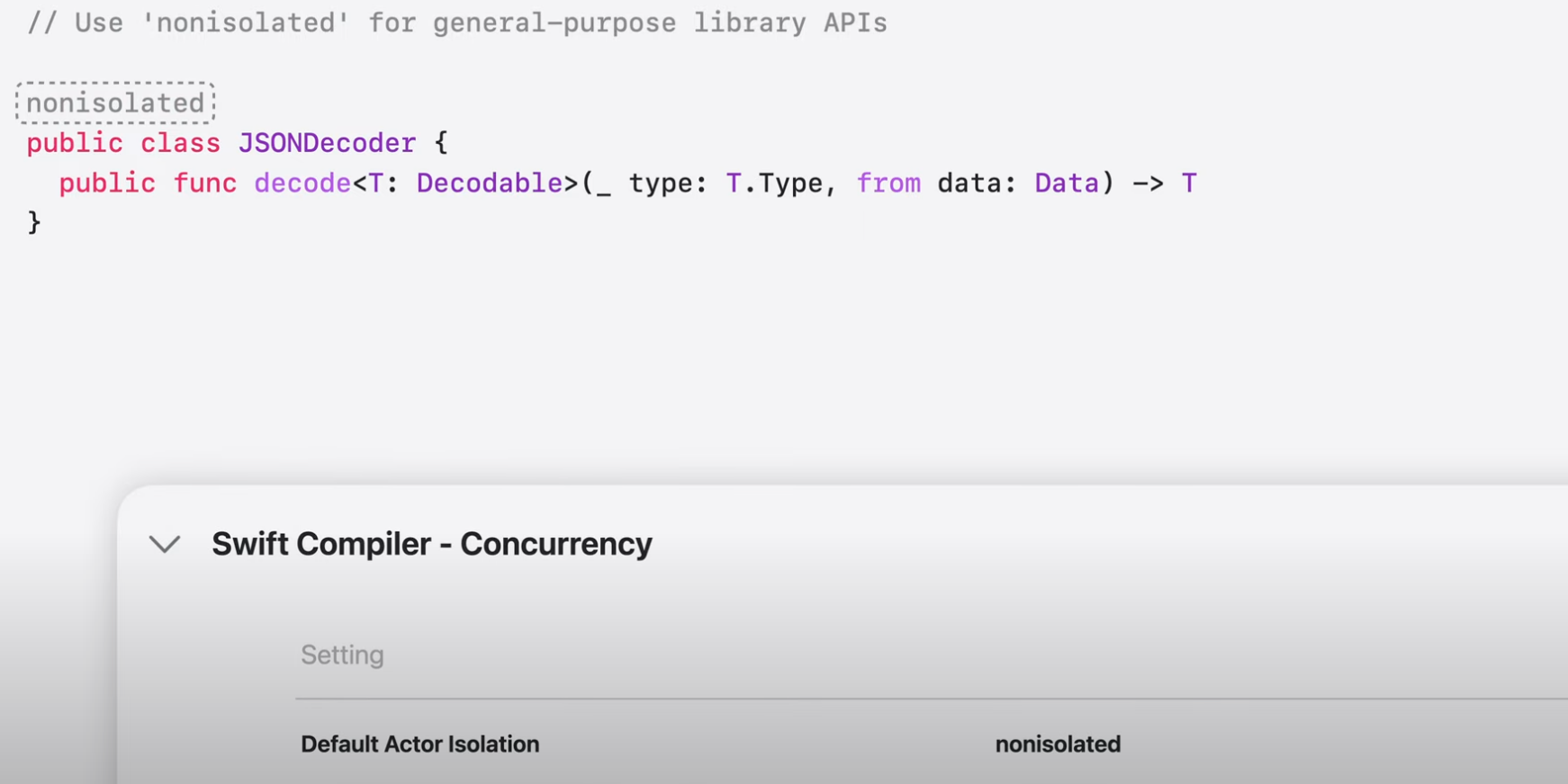 nonisolated 코드는 어디에서나 호출할 수 있기 때문에 매우 유연함.