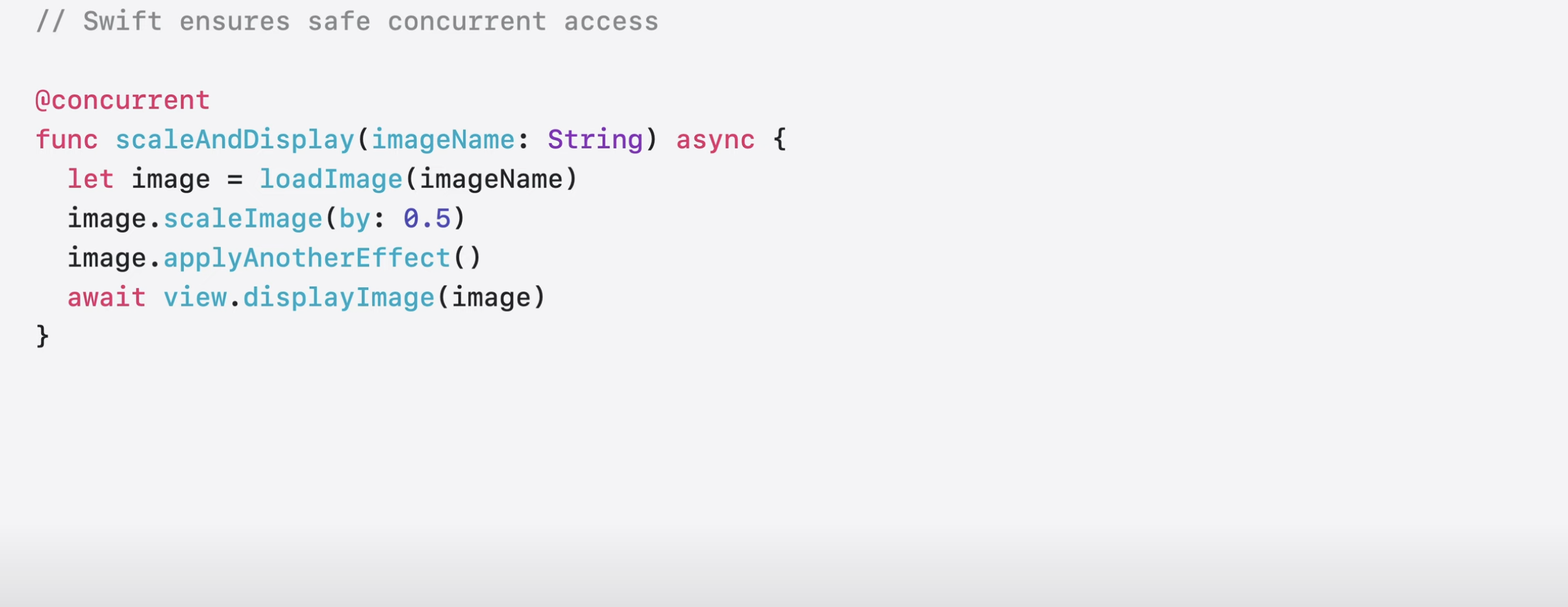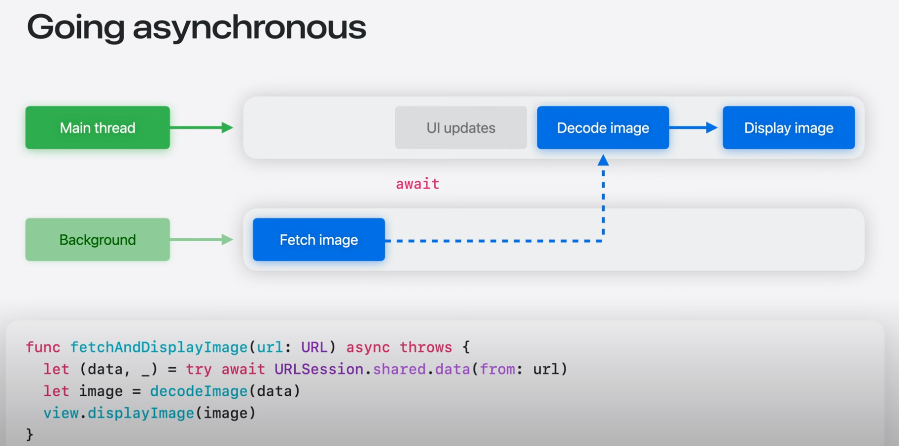 - await을 사용하여 동시성 코드에서 MainActor에 비동기적으로 접근할 수 있음.