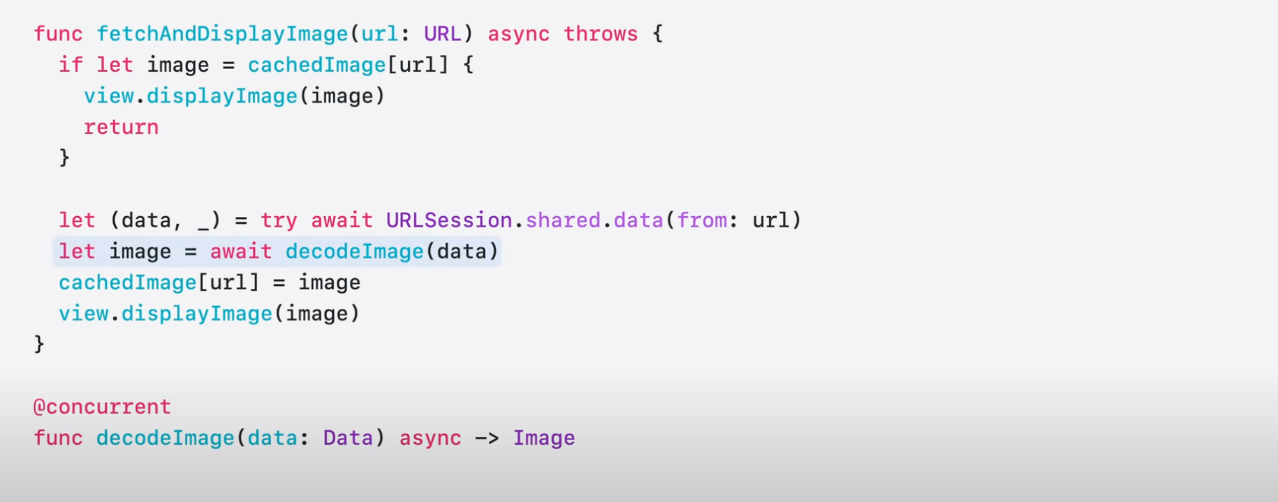 - 그런 다음에 해당 함수를 동시성 풀(@concurrent를 명시)에서 실행되는 Task를 생성하고, 해당 이미지의 copy를 가져옴.
