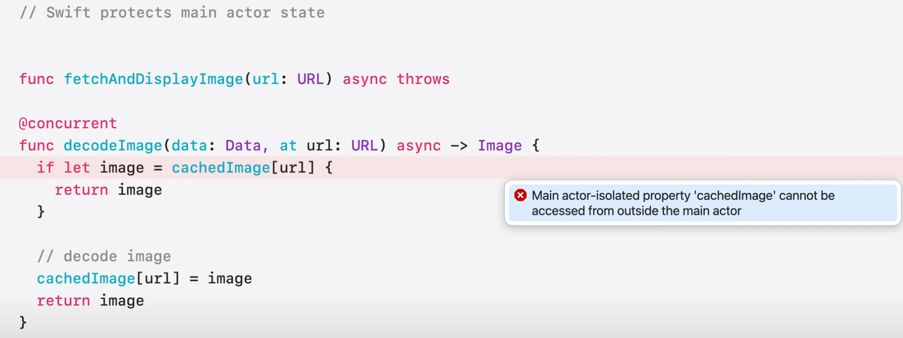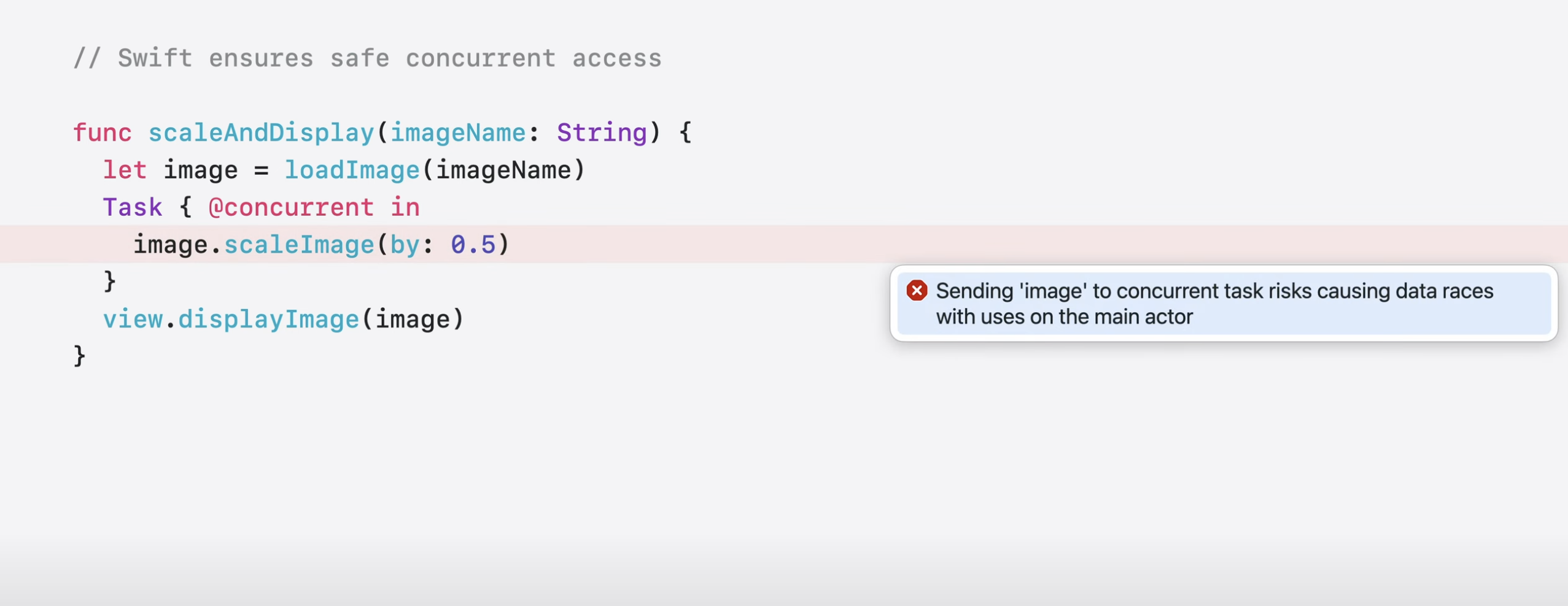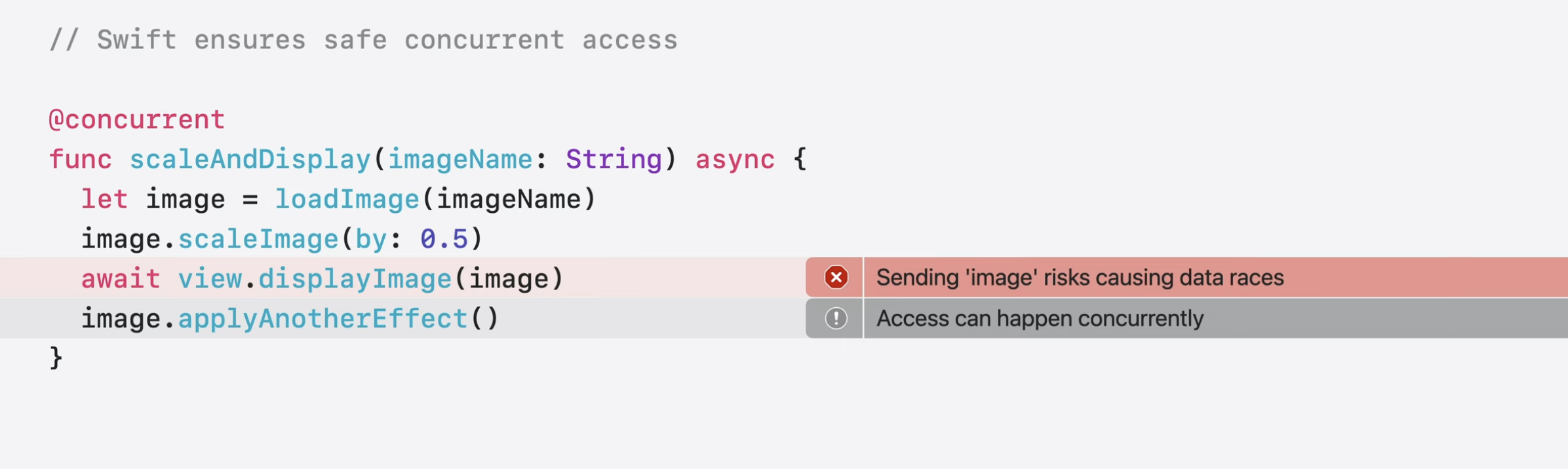 컴파일러는 @concurrent에서 실행되는 작업이 image를 캡처하고 있음을 나타냄