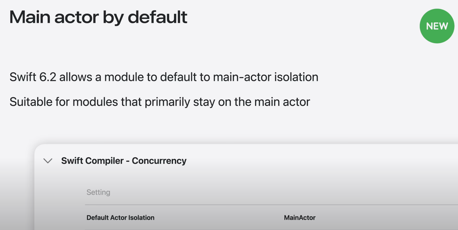 Swift 6.2 @MainActor가 기본이 되므로 해당 세션에서는 이를 가정하고 진행.