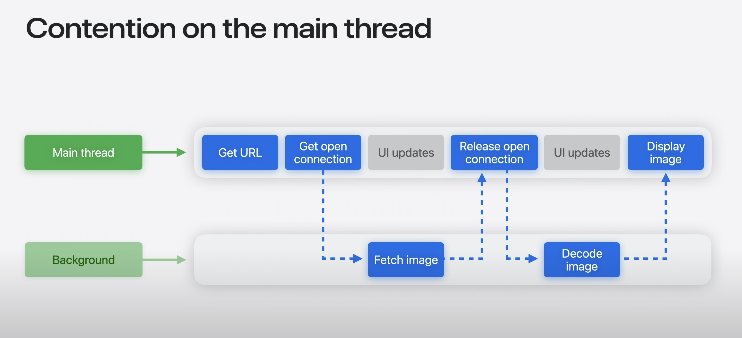 비동기 작업은 Main에서 background로 옮기면 앱의 응답성을 향상시킬 수 있음.