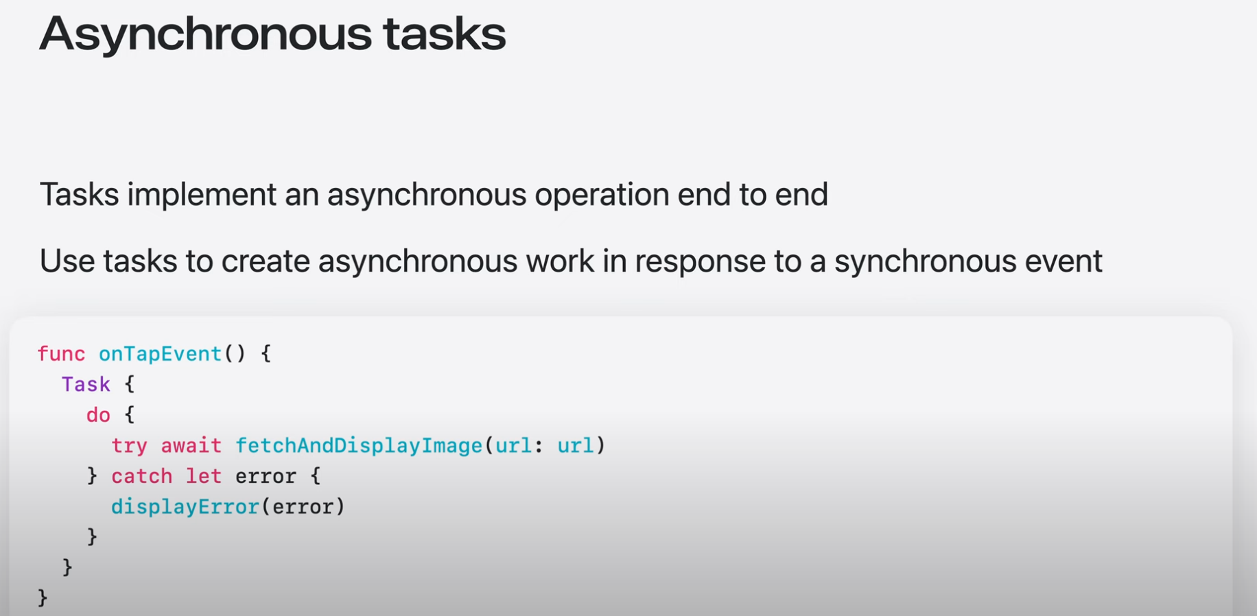 Task는 다른 코드와 독립적으로 실행되며, 특정 작업을 처음부터 끝까지 수행하도록 생성되어야 함.