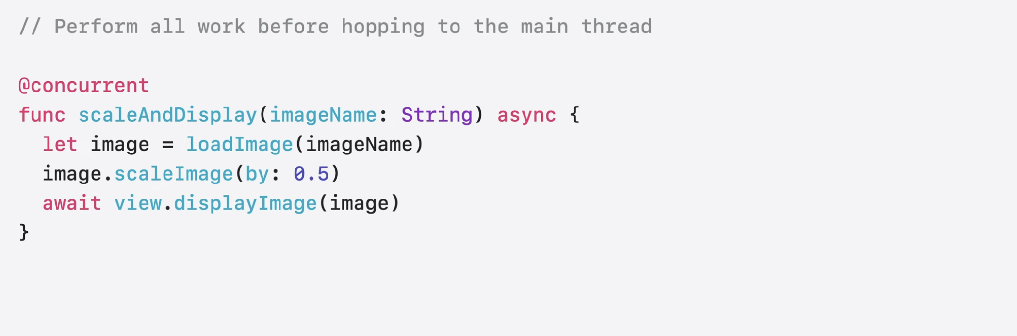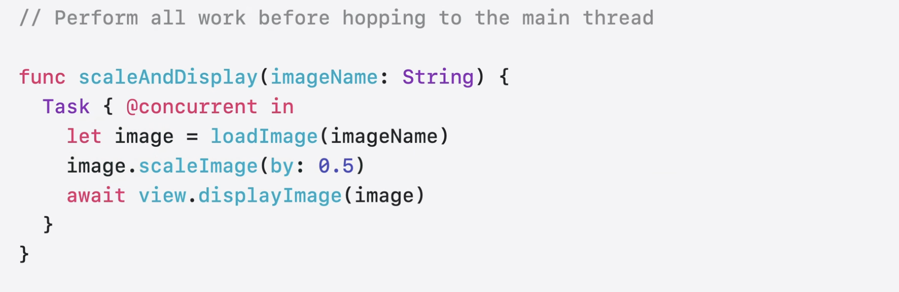 - 어떤 경우에는 MainActor의 코드를 항상 MainActor에서 실행되는 호출자로 옮길 수 있음