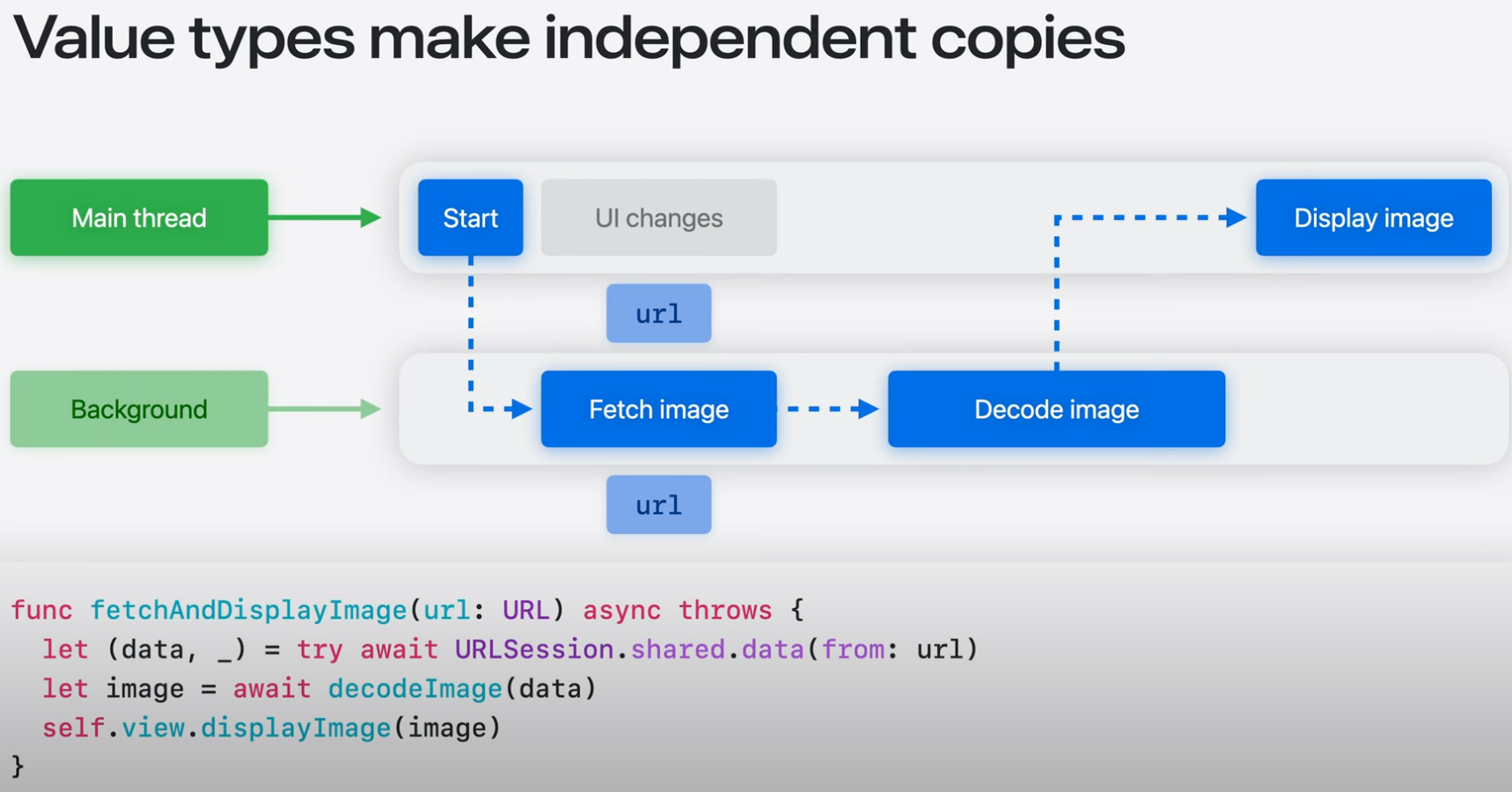 - url은 value type으로 메인 스레드에 존재하는 URL과 별도의 copy를 background에서 생성