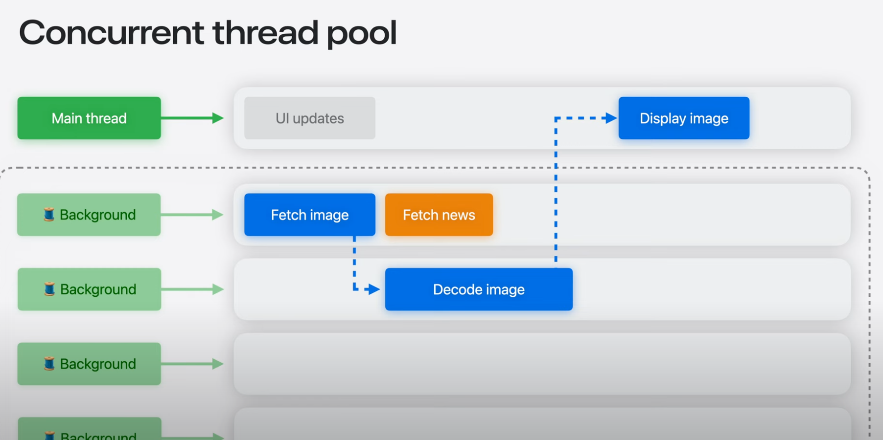 작업을 백그라운드로 오프로드하면 시스템은 작업이 백그라운드에서 스레드에서 실행되도록 스케줄을 조정함.