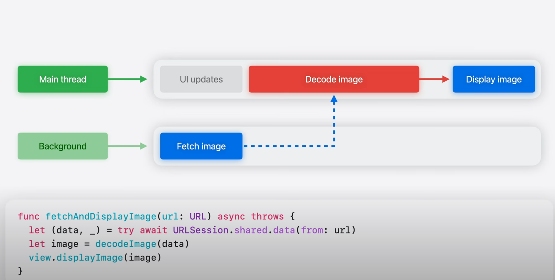 이후 UI를 표시하기 위해 MainActor로 보내면서 이미지 객체를 캐싱하는 등의 방법으로 이미지에 대한 참조를 저장할 수 있음.