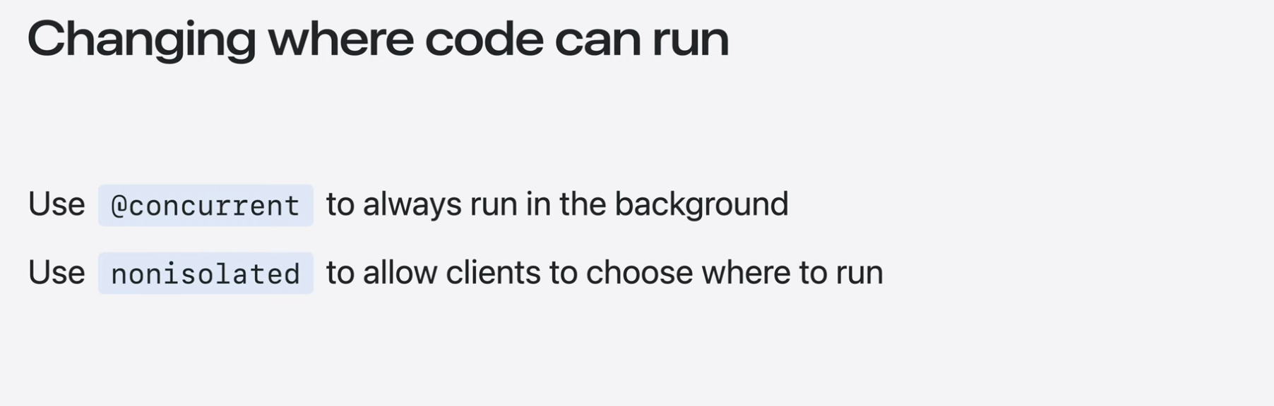 - nonisolated를 사용하면 어디서 실행될지 client가 선택할 수 있음.