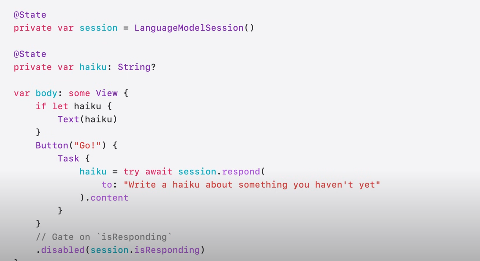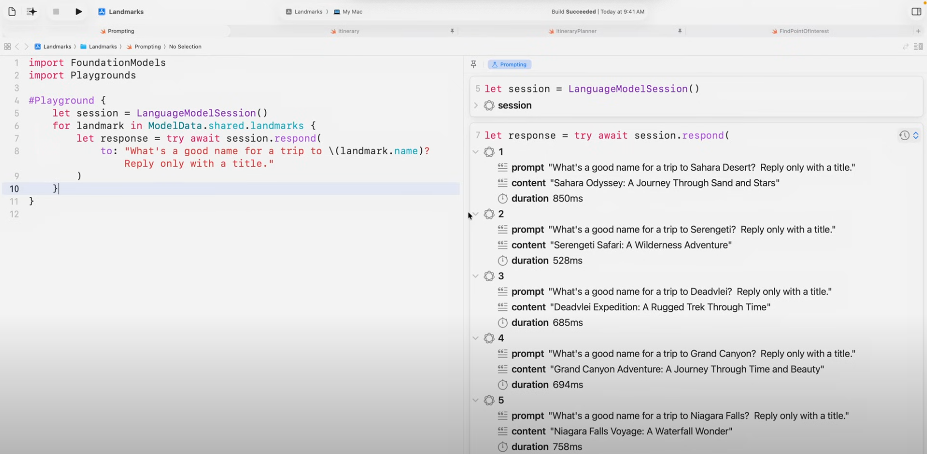 플레이그라운드에서 단순히 몇줄을 추가하는 것만으로도 온디바이스 모델에 프롬프트를 보낼 수 있음.