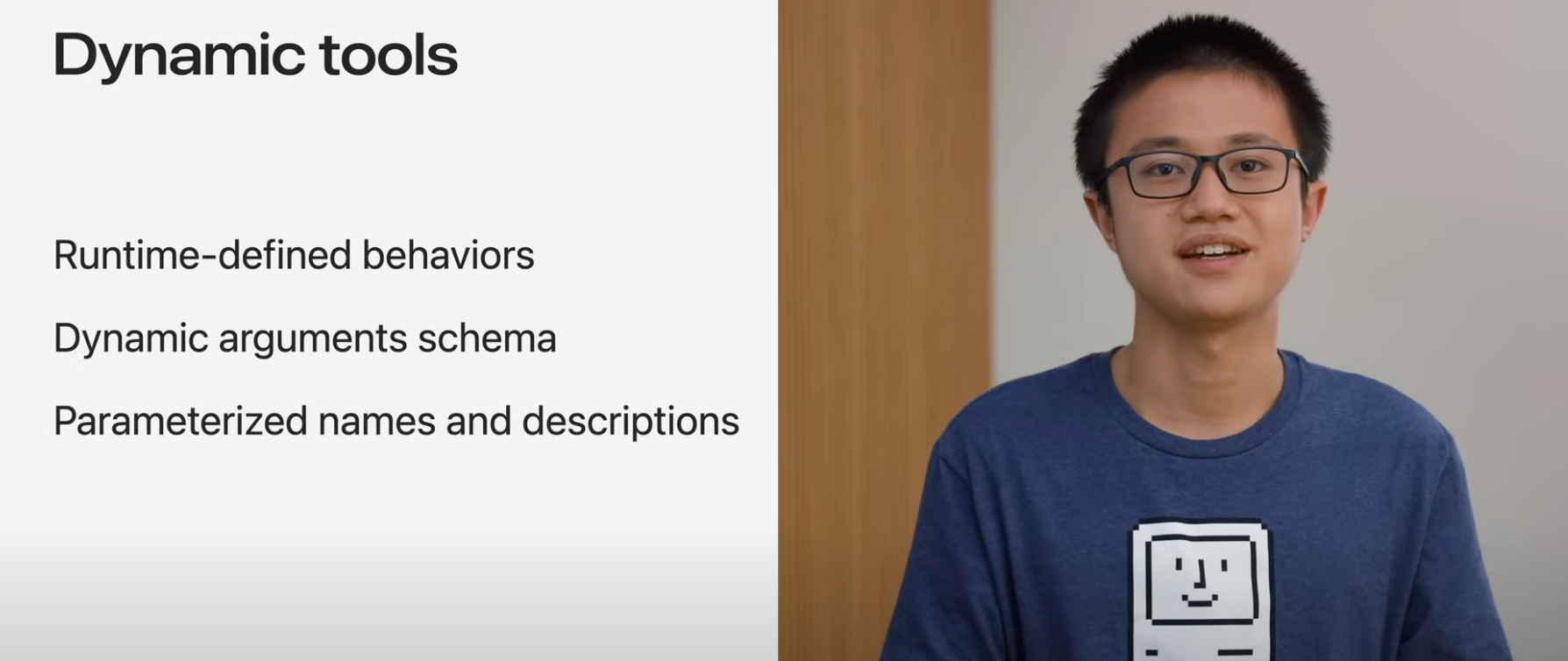 예를들어 런타임에 생성 스키마를 사용해 실행시, Tool과 arguments의 동작을 정의할 수 있음.
