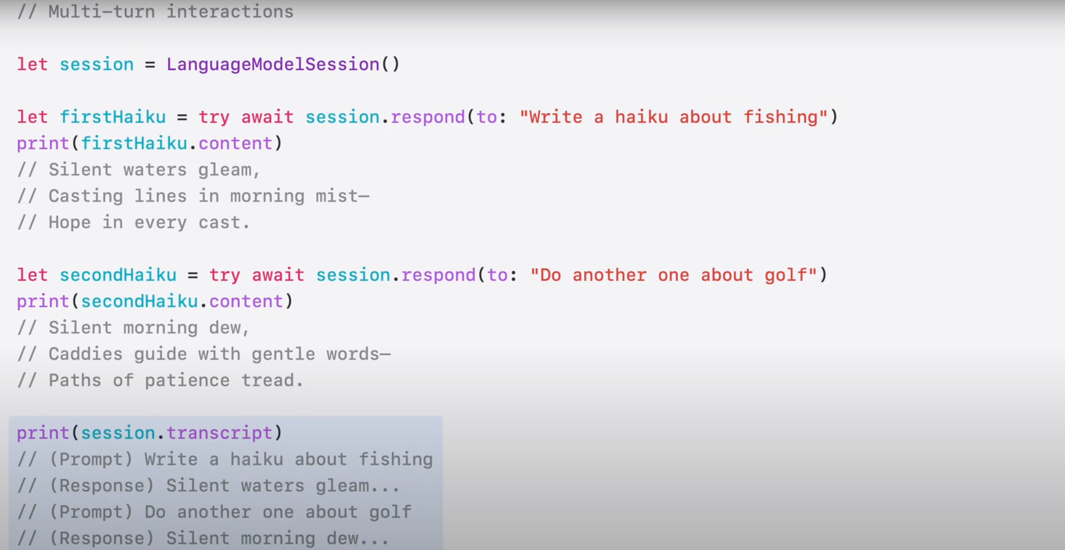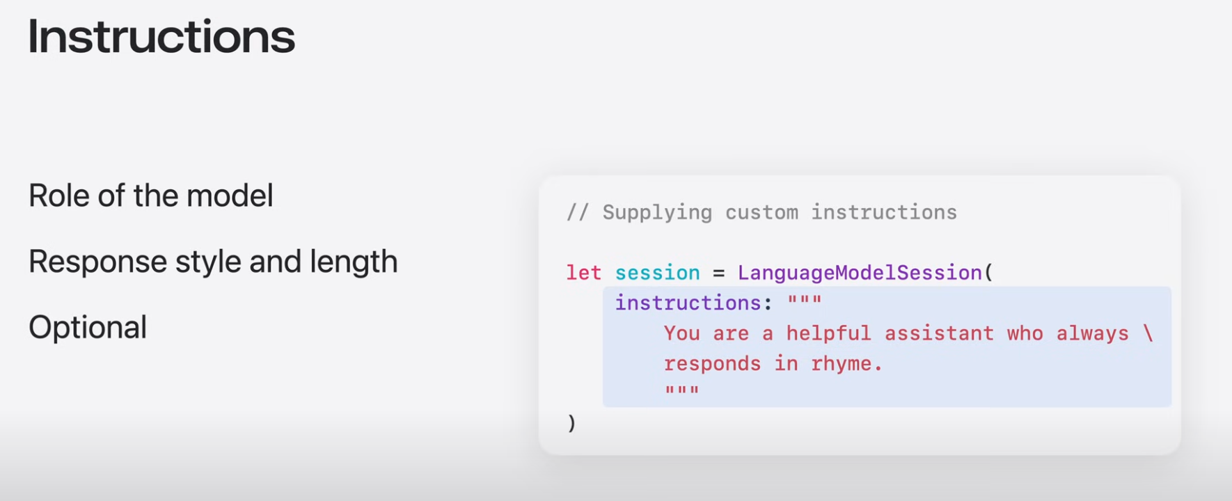 기본적으로 세션을 생성하면 온디바이스 범용 모델에 프롬프트를 전달하게 됨.