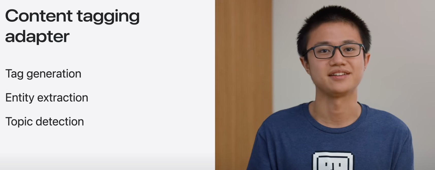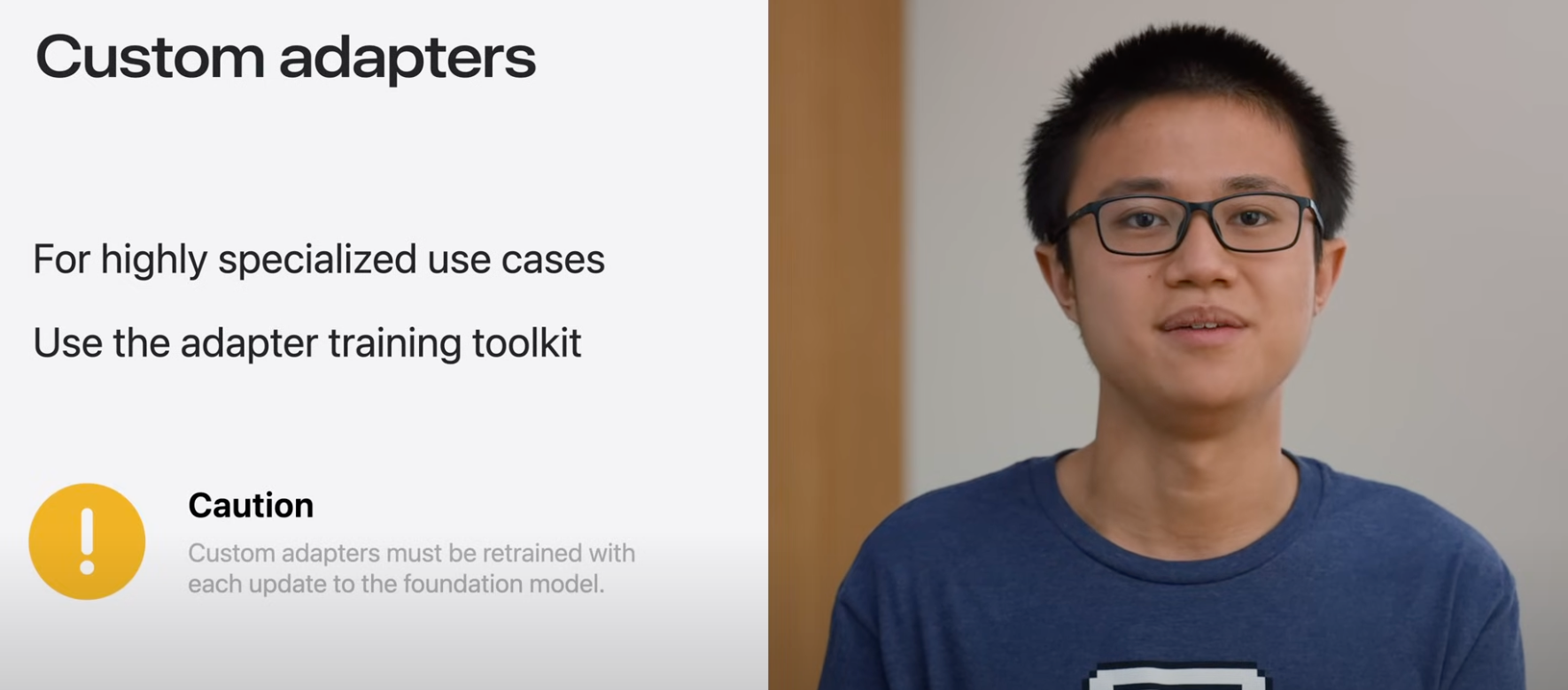 컨텐츠 태깅 같은 일반적은 작업은 Foundation Models에서 Adapters로 제공되어 특정 도멩니에서 모델의 역량을 극대화 함.