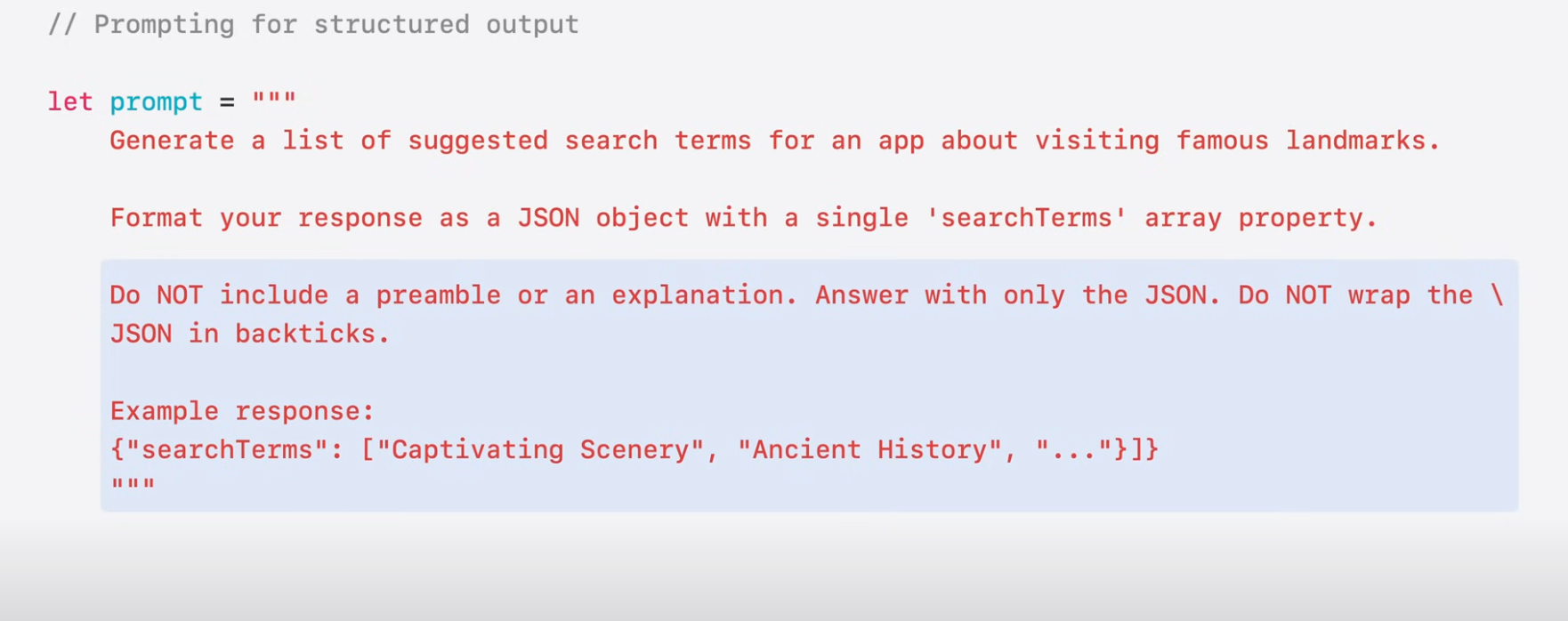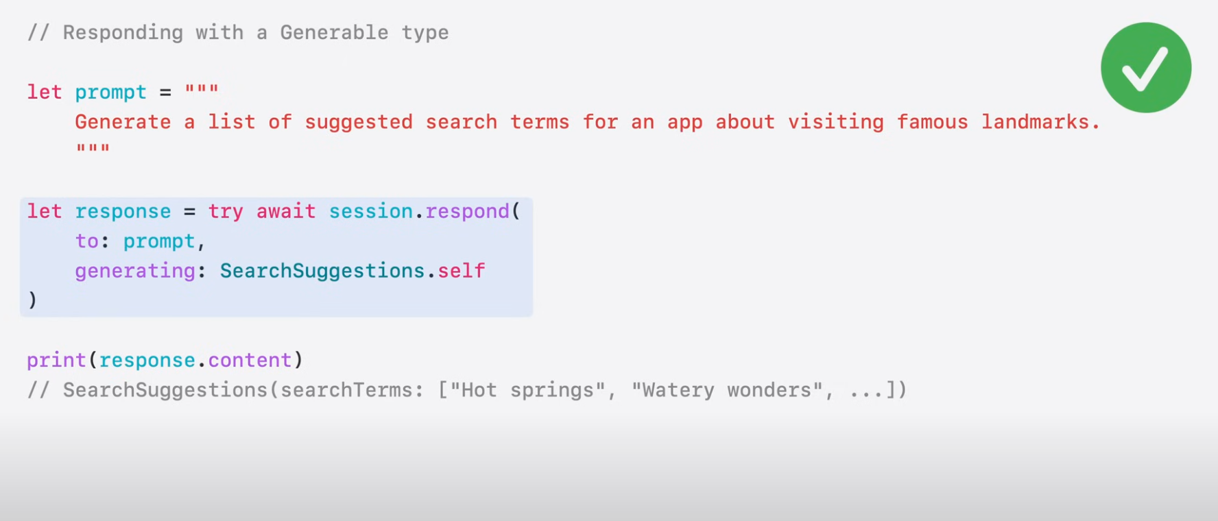 @Generable을 사용하면, 내가 주어준 structure로 데이터가 나오는걸 보장함.