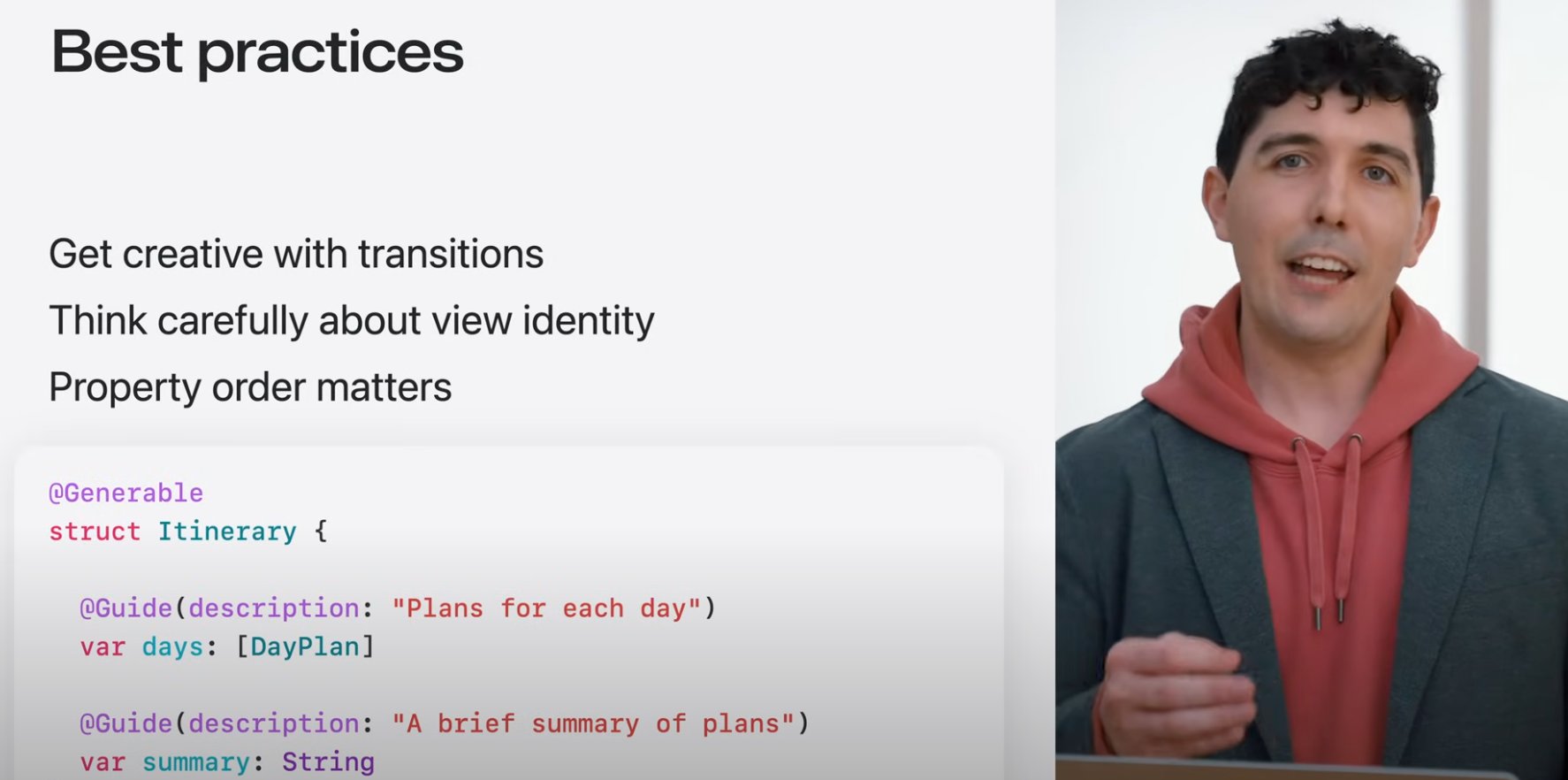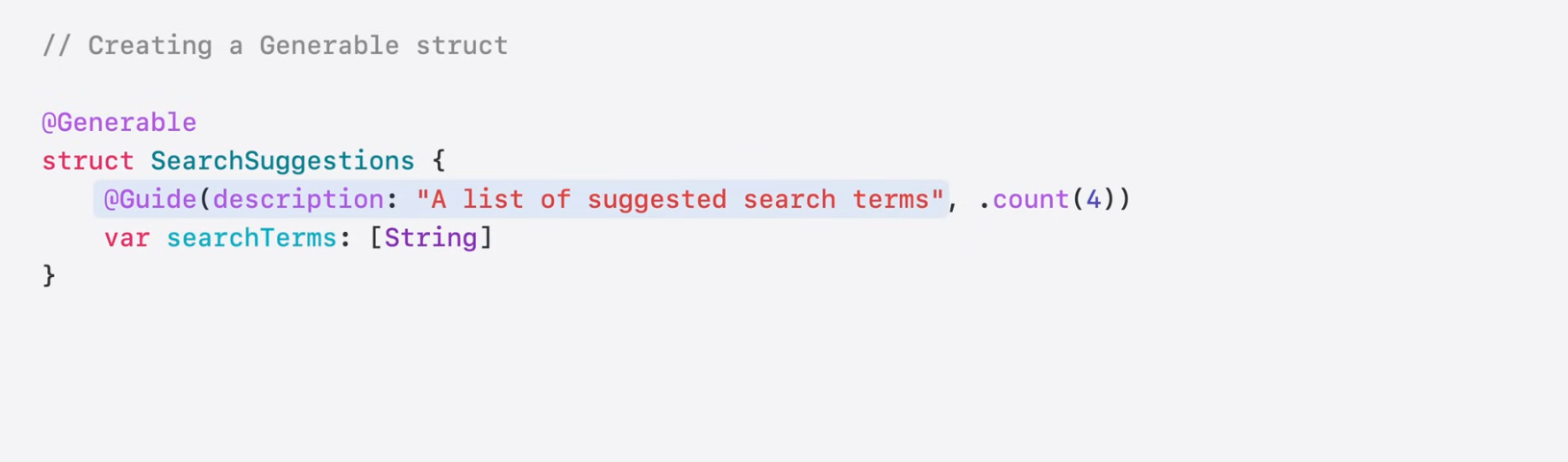 @Generable은 모델이 생성할 타입을 설명할 수 있게 해줌.