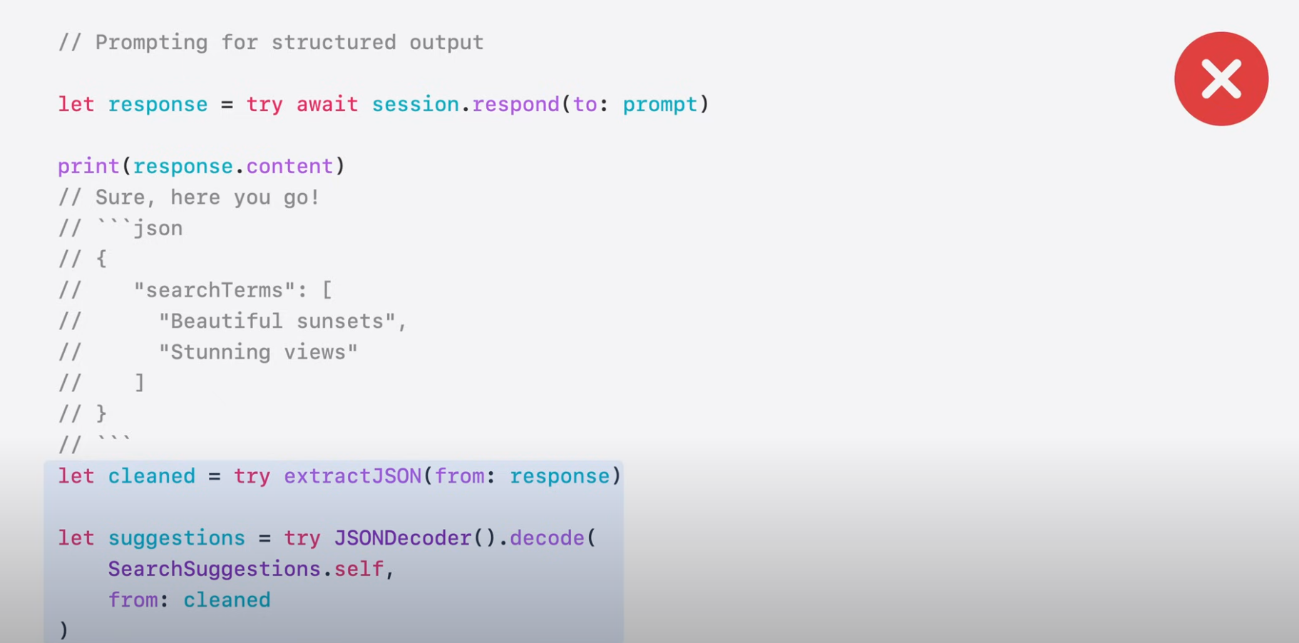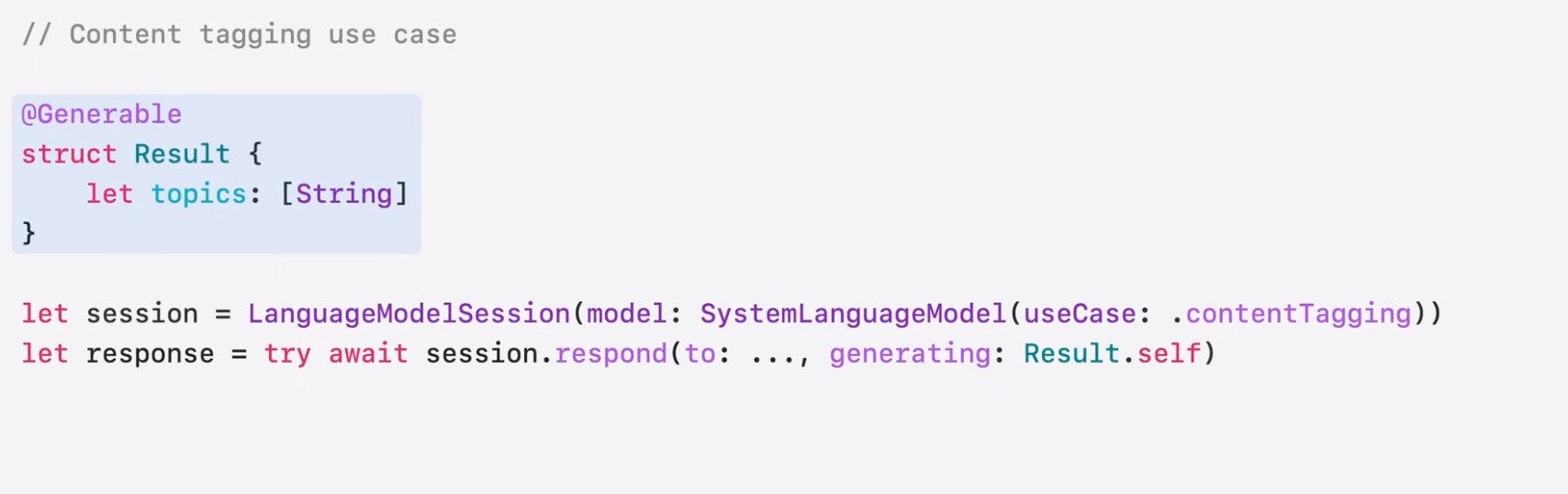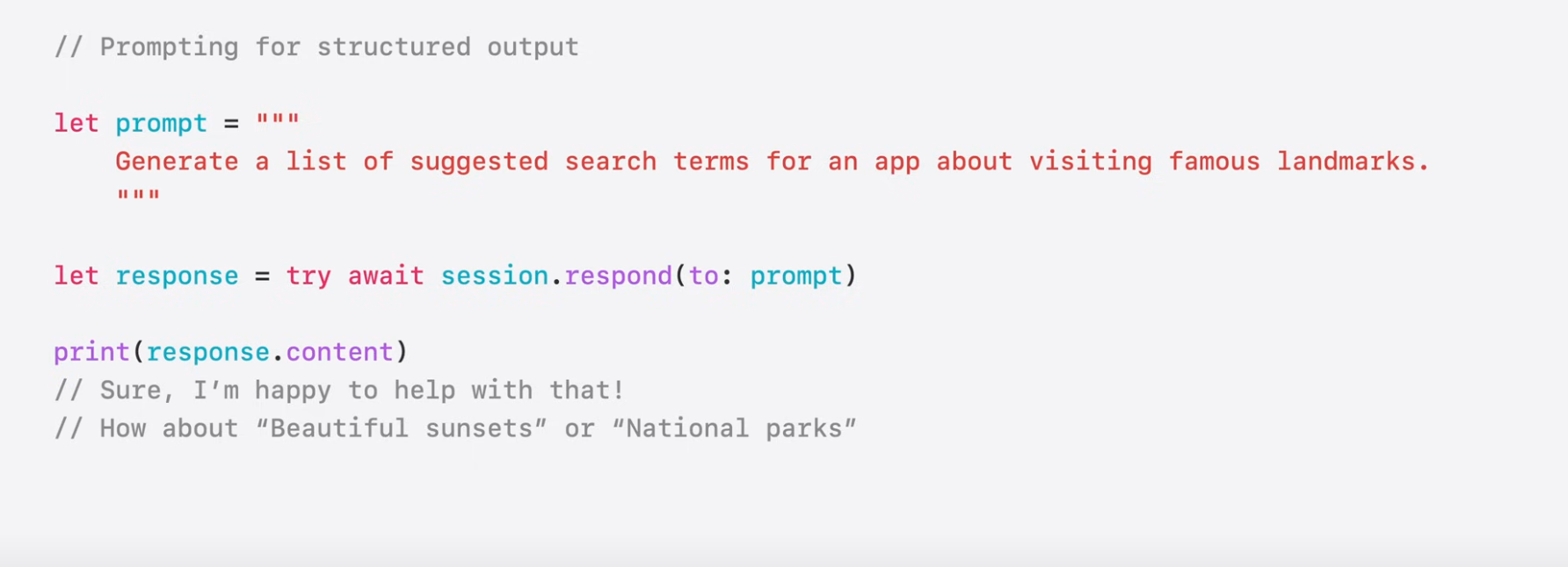 하지만 Foundation Models 프레임워크의 핵심은 구조적으로 출력 된다는 것임.