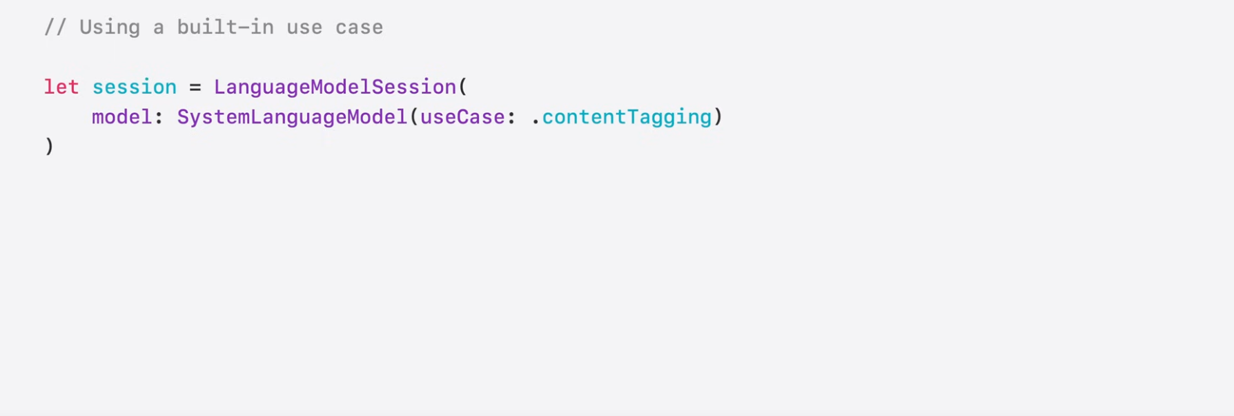 필요에 맞는 내장 사례를 찾으면 SystemLanguageModel의 초기화 메서드에 전달할 수 있음.