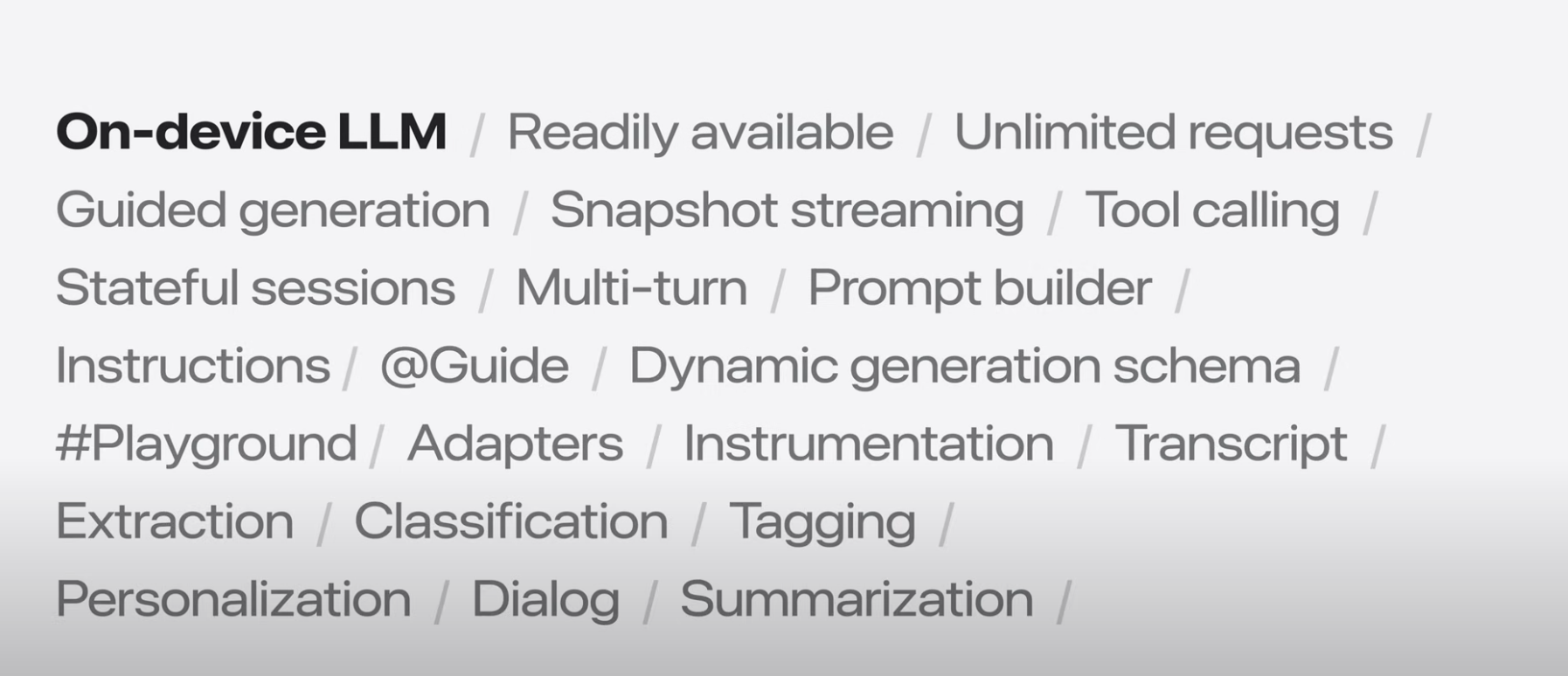 Swift API를 통해 Applle Intelligence를 사용 가능한 LLM 모델에 접근할 수 있음.