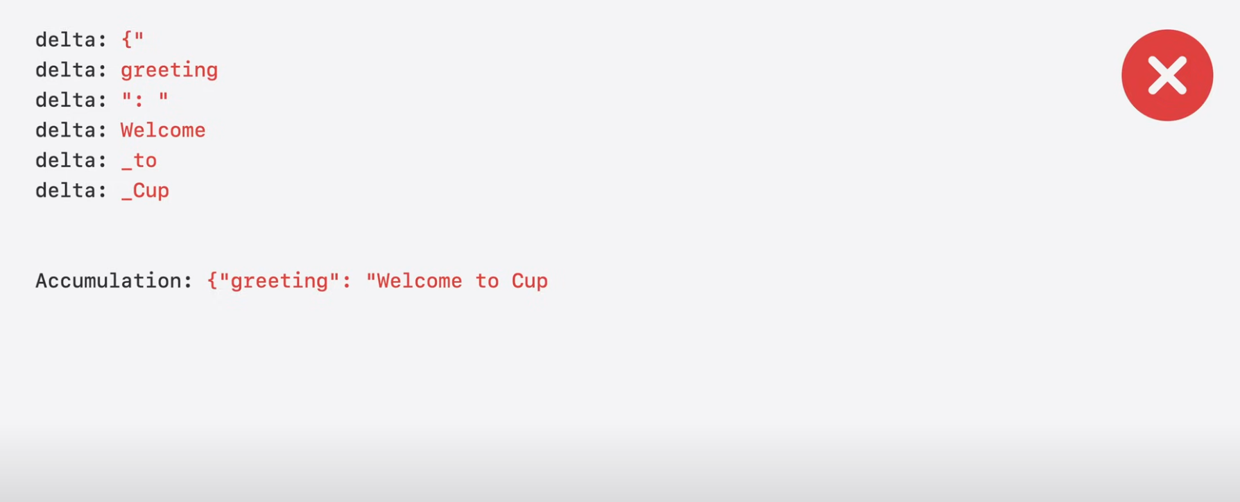 델타 스트리밍은 구조적 출력을 다룰때는 적절한 방식이 아님.