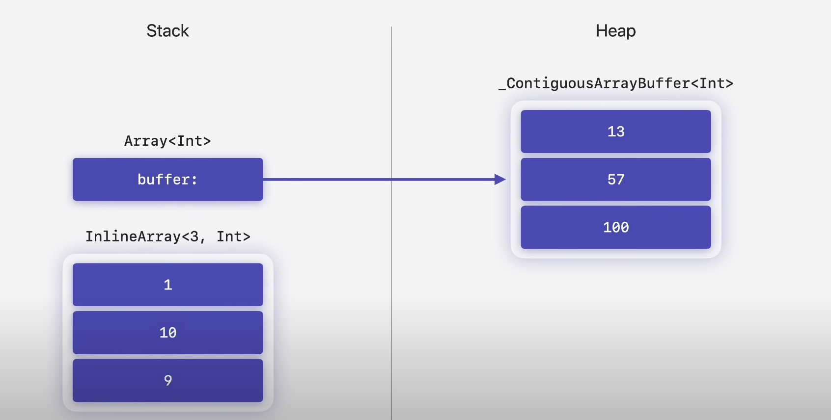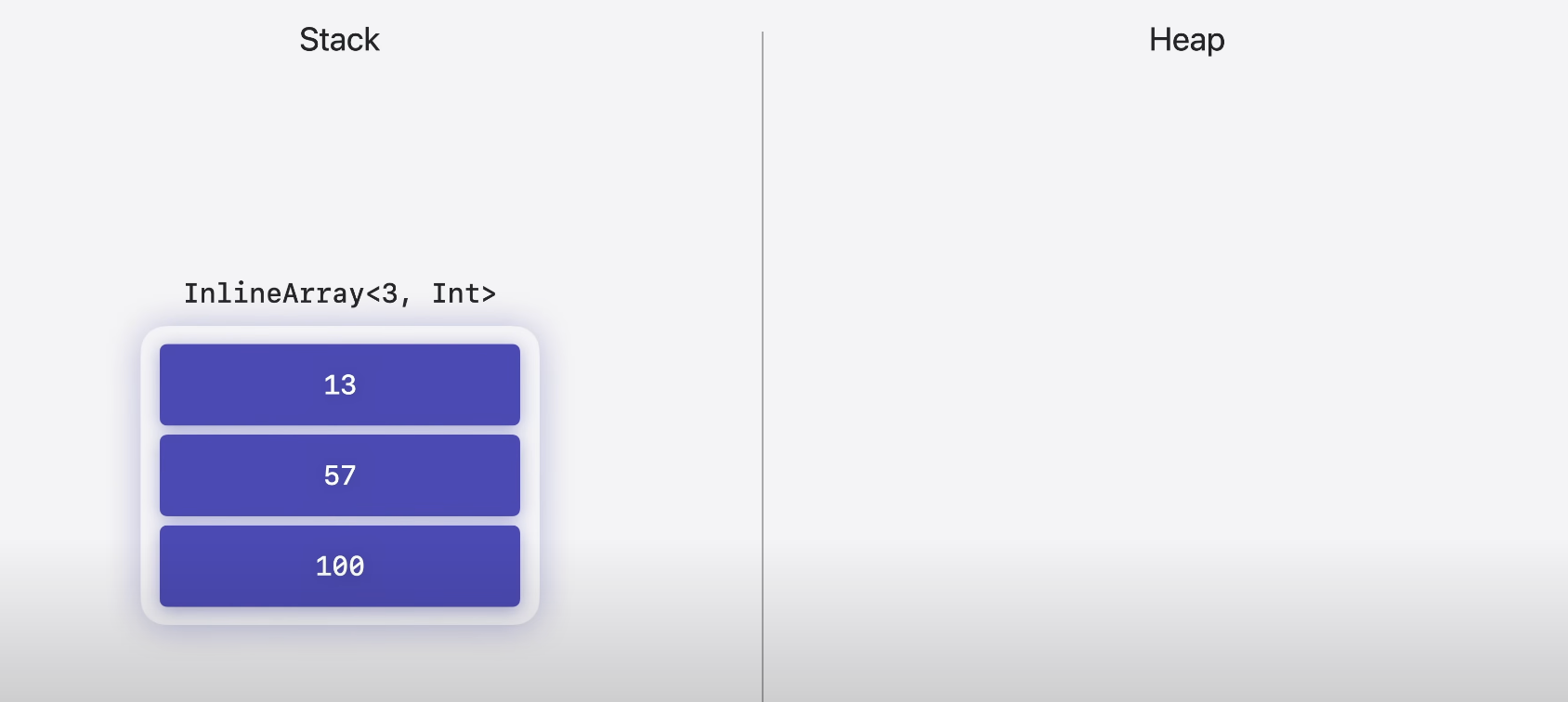 InlineArray는 Element를 Heap에 저장하는 대신 스택에 바로 저장함.