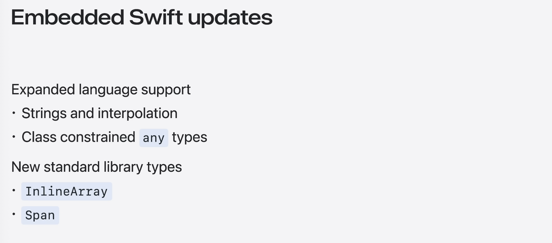 iOS 26에서는 Embeded Swift는 CPU와 GPU 사이의 공유 메모리 페이지에 대한 접근을 관리하는 보조 프로세서에서 사용됨.