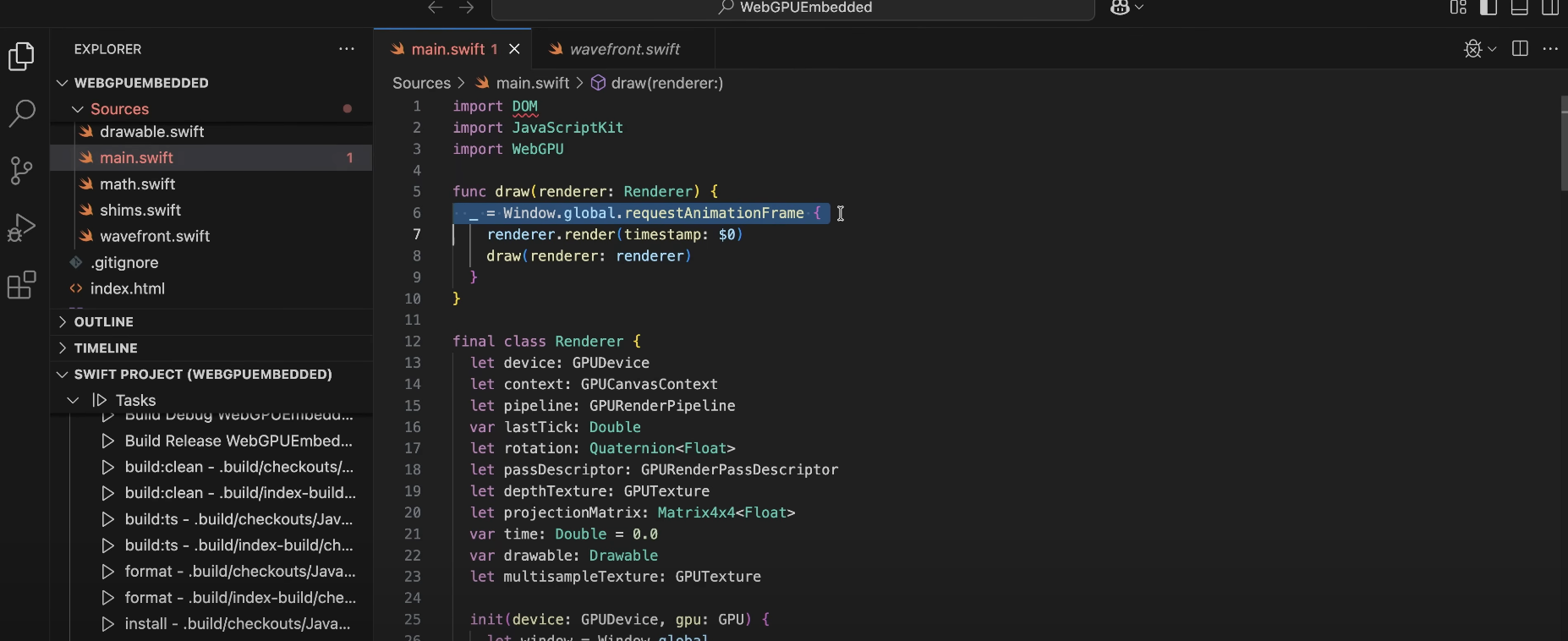 SwiftBuild를 호출해 WASM앱을 컴파일하도록 구성되었음.