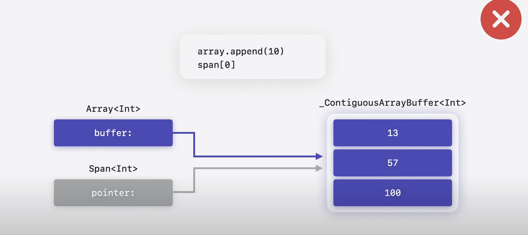 예를 들어서 함수가 인전한 스토리지에서 Swift 6.2 이전에는 일반적으로 UnsafeBufferPointer를 사용해야 함.