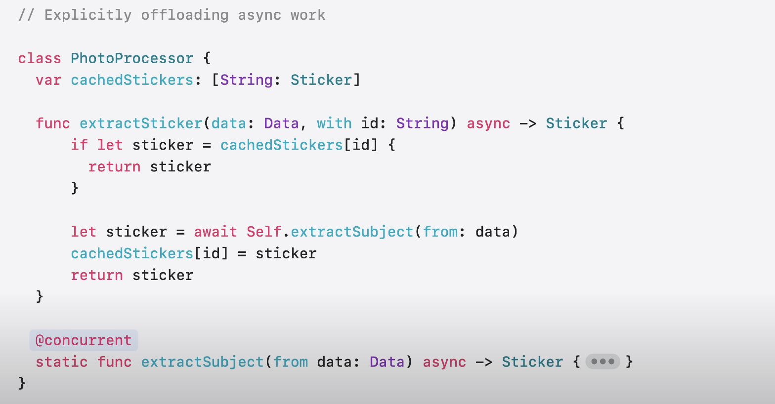 extractSubject 메서드는 @concurrent 속성을 활용해 해당 작업을 오프로드할 수 있음.