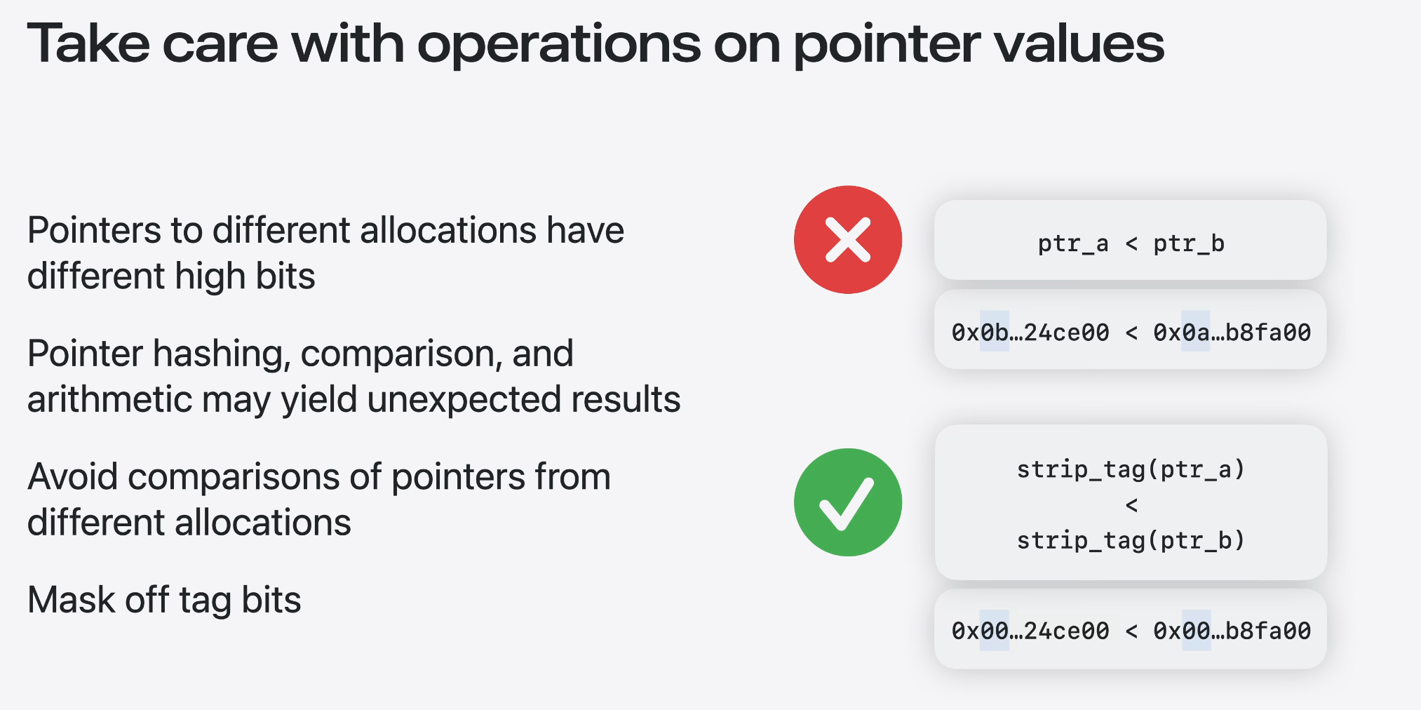 포인터에 대한 해시, 비교 또는 산술 연산을 수행할 때도 주의하는 것이 중요함.