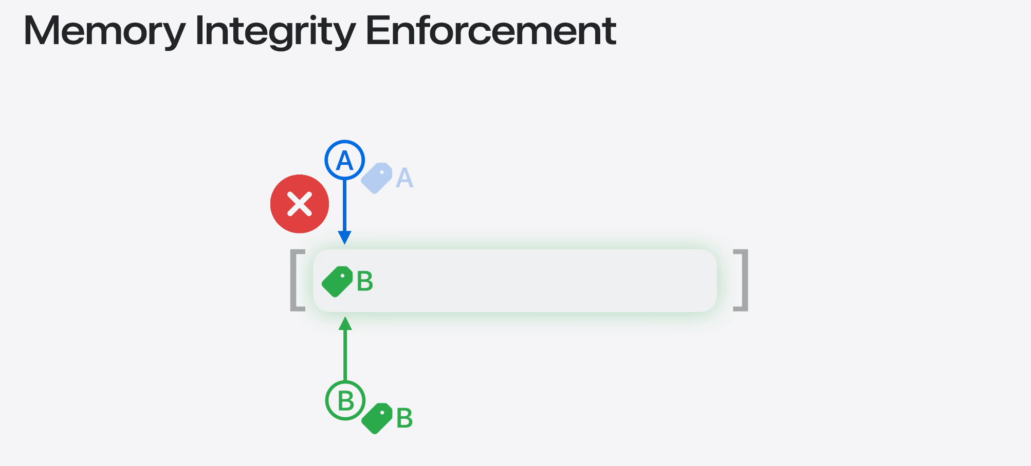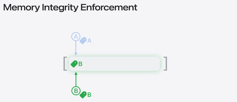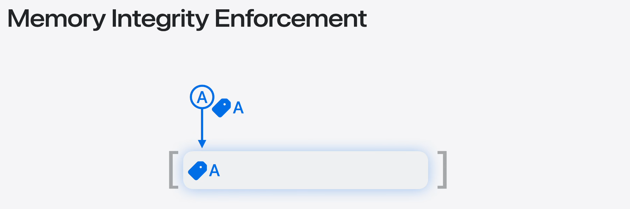 메모리 무결성 강화에 따라 시스템 할당자는 각 힙 할당에 태그를 지정하고, 반환 포인터에 해당 태그를 인코딩 함.