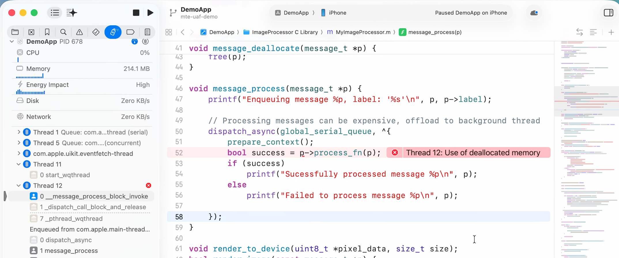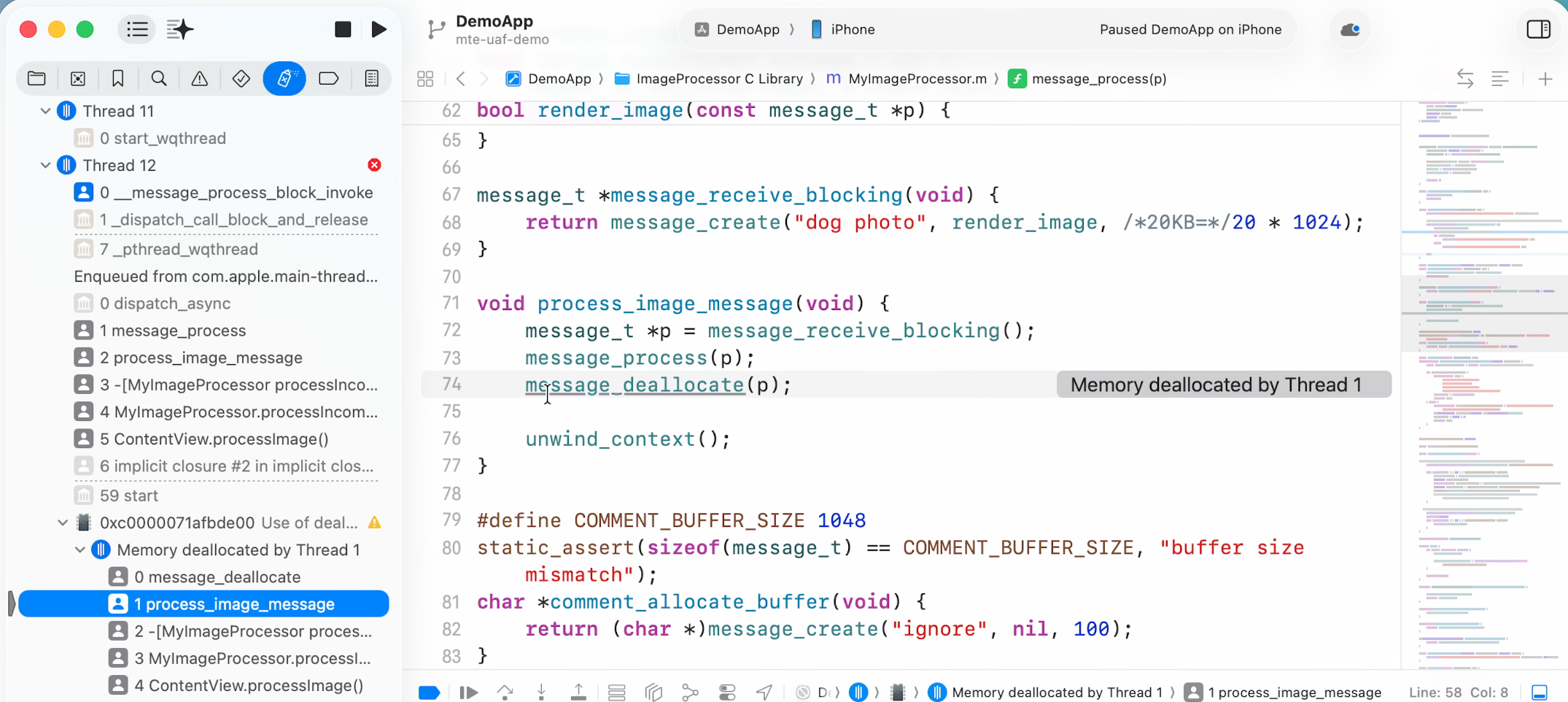 스택을 따라서 process_image_message 메서드로 이동해보면 dellocate 시키고 있음.