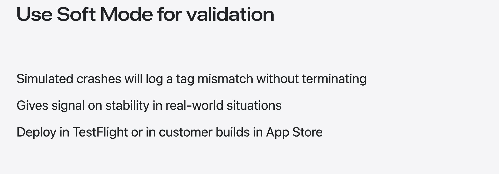: 테스트 플라이트에서 이 기능을 활성화해서 메모리 손상 버그가 없다는 확신을 얻을 수 있음.