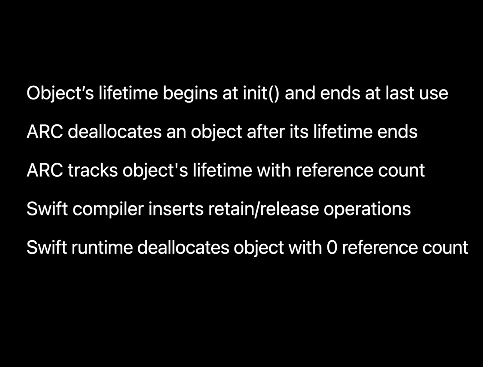 Swift 컴파일러는 참조가 시작될 때 retain을 삽입하고 참조를 마지막으로 사용한 직후에 release를 삽입함