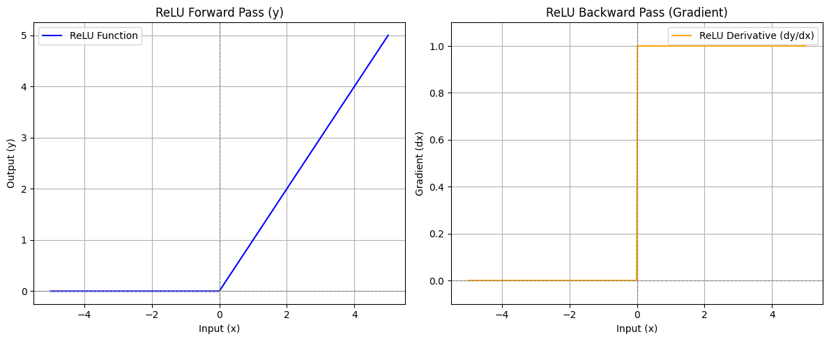 - 값이 0이면 이미 죽은 노드라서 0처리하고 0보다 크면 기울기를 그대로 전달한다.