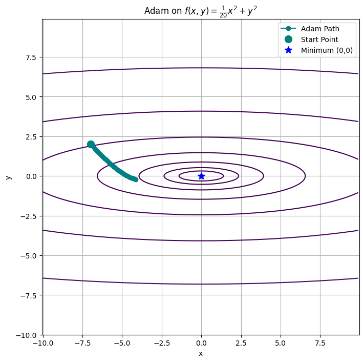 optimizer_adam = Adam(lr=0.1) # 시각화를 위해 lr을 0.1로 높여 수렴 속도를 빠르게 함