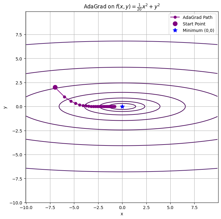 # 3. AdaGrad 알고리즘 실행 및 경로 저장