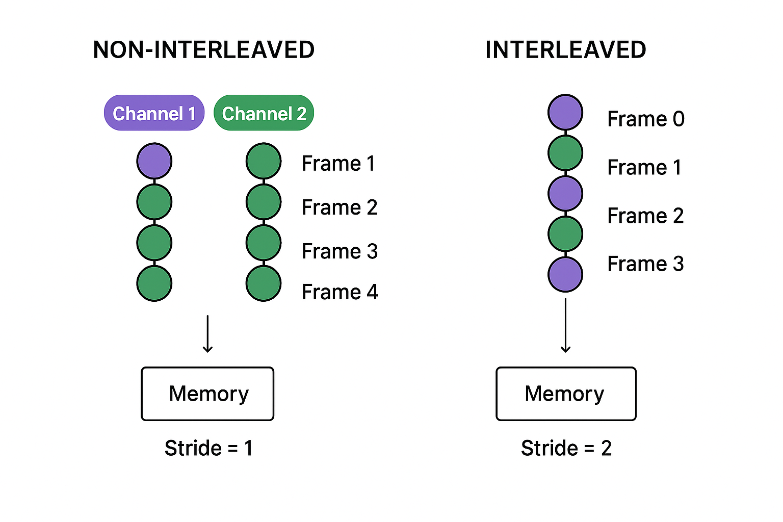 - 샘플이 채널별로 섞여(interleaved) 저장