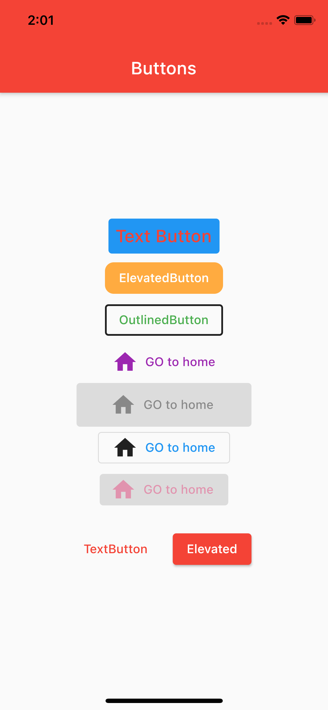 Flutter 2.0에서 버튼 위젯 변화 정리 (TextButton, ElevatedButton, OutlinedButton) Flutter 2.0에서 버튼들이 변화되었음.RaisedButton -> ElevatedButtonFlatButton -> TextButtonOutlineButton -> OutlinedButtonTextButton에서 background속성이 존재하지만 다른 버튼에는 백그라운드가 없어서 styleForm안에서 color를 사용해서 백그라운드를 설정. 샘플 코드ButtonBar의 경우에는 버튼의 가로로 여러개가 배치되어 있는데 화면의 가로 너비가 부족해서 세로로 전환해야할 때 반응형 웹처럼 자동으로 바꿔주는 것이다. import 'package:flutter/materi..